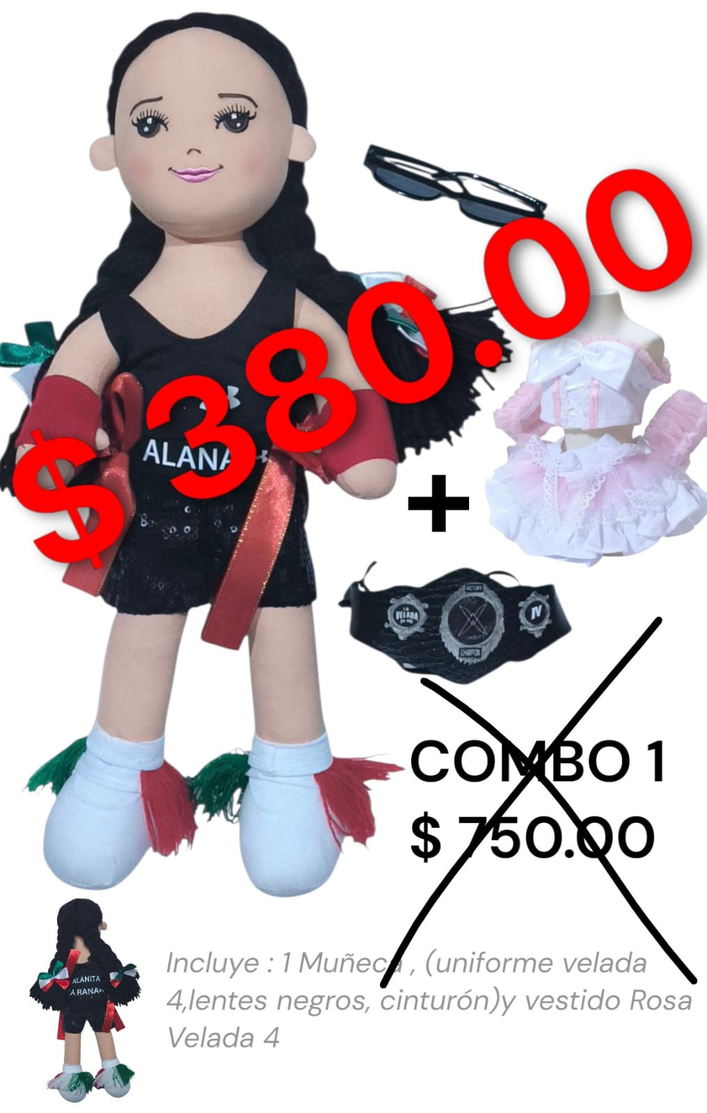 • 1 muñeca de Alana con el outfit oficial de su pelea en Stream Fighters 3, con falda y top inspirados en su look.