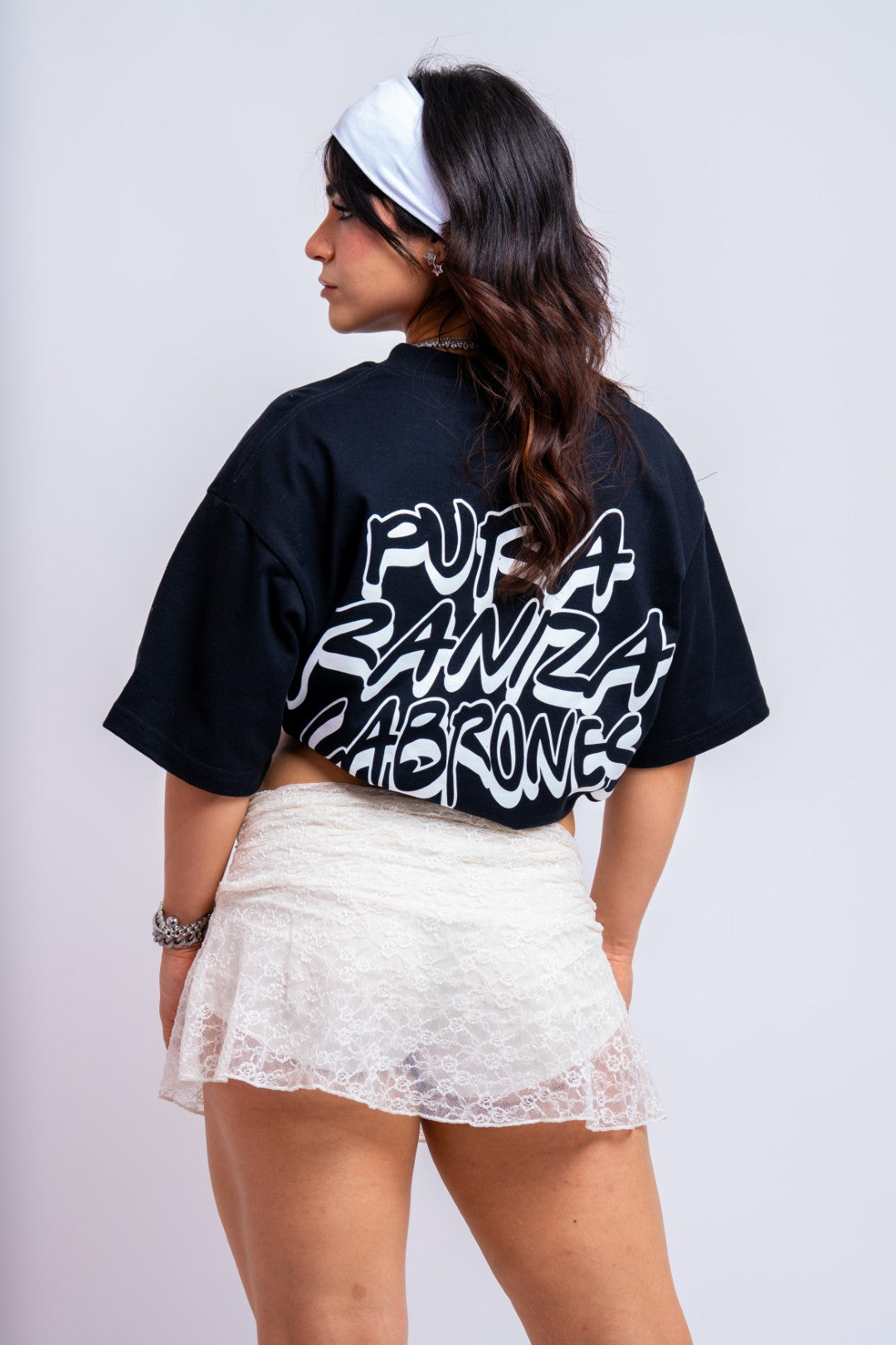 Camiseta oficial Raniza FC con fit oversize y tejido premium 100% algodón peinado. Su gramaje 240GSM ofrece caída sólida y máxima durabilidad. Unisex. True to size para un look suelto; baja una talla si la prefieres menos amplia.